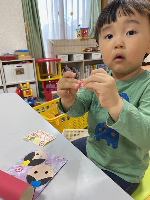 いつもなら簡単な製作も「えっ!どうやるん?できない‥。」と言いつつも
