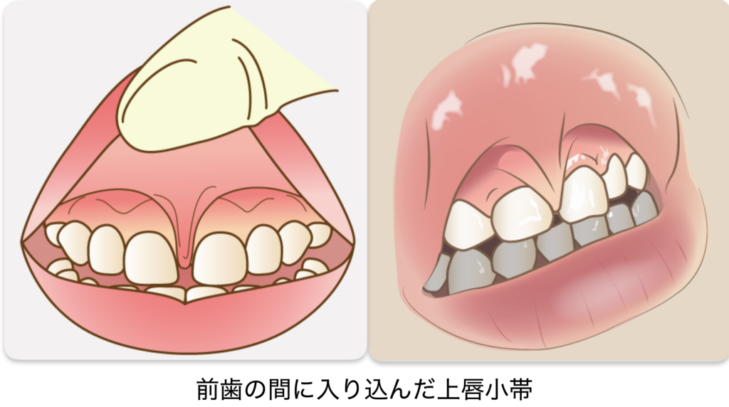 小帯が分厚く歯の間に入り込んでいると、永久歯の前歯にすき間ができることがあります。