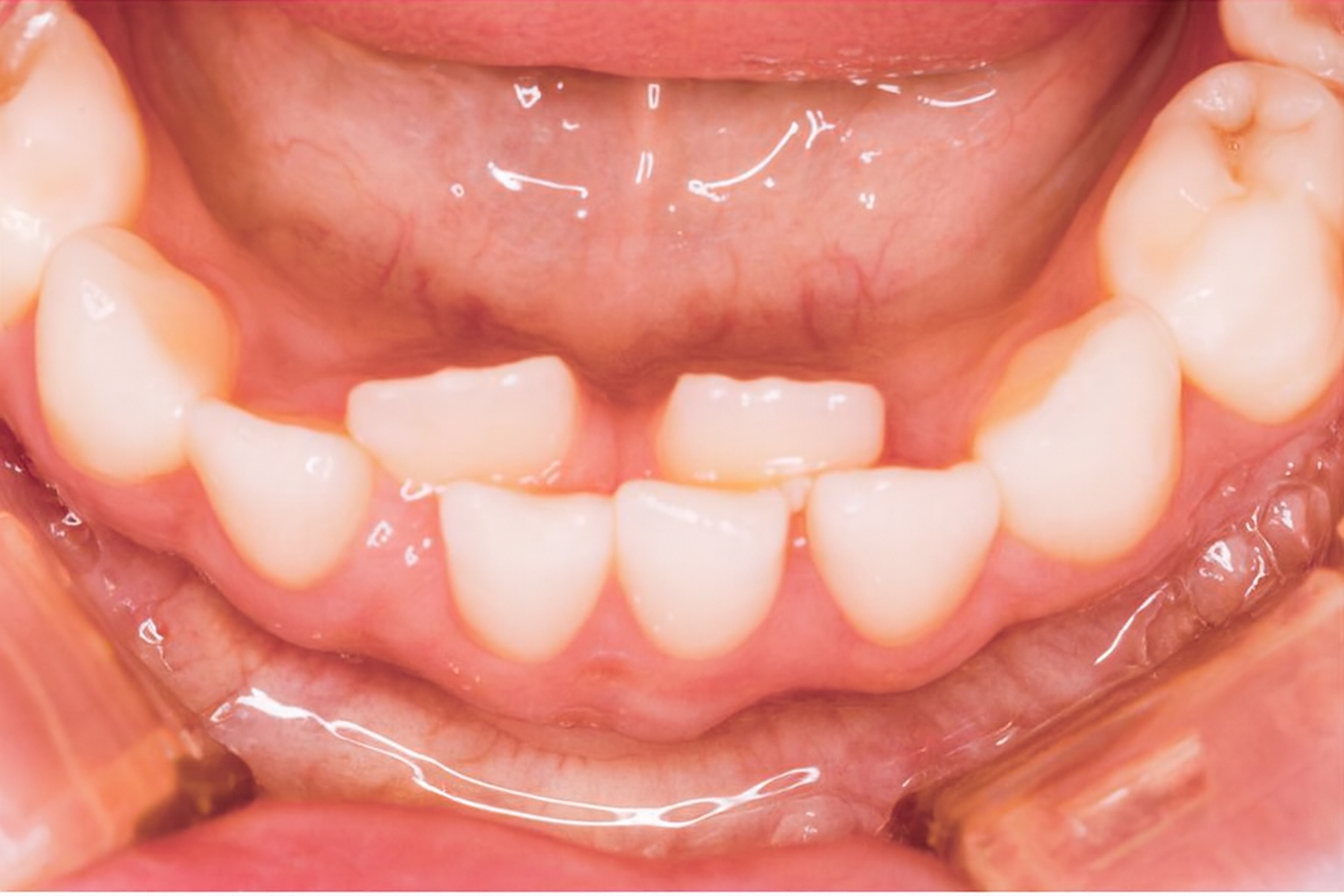 その後、舌の力や成長により、永久歯がだんだん前に押し出されて正しい位置に並んでいきます。
