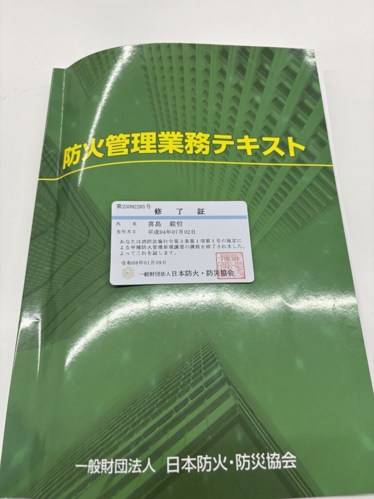 先日甲種防火管理者の資格を取得してまいりました