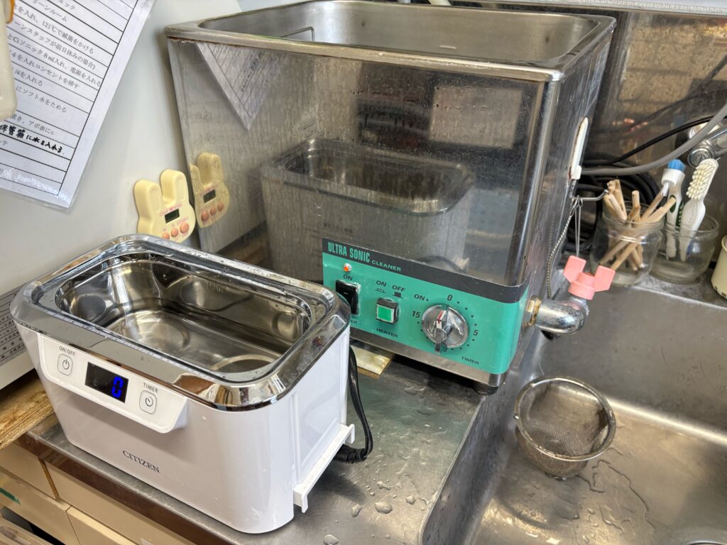 まず、血液や唾液などの汚れを超音波洗浄器で丁寧に落とします。