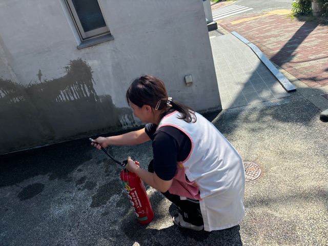 消火器も初めて触る時は操作がわからず、戸惑っていましたが、何回かすることで慣れてきました。