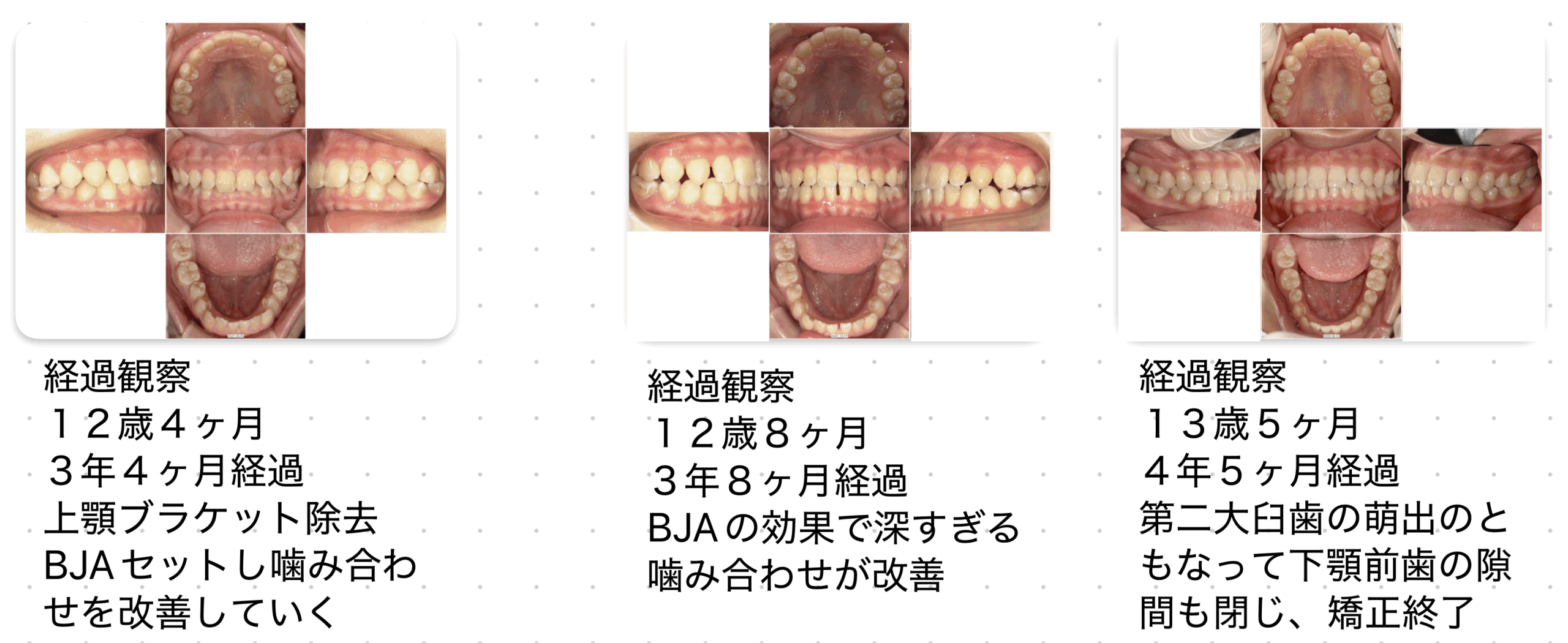 第二次性徴期をとらえてBJAという噛み合わせの深さを改善する装置を入れたので、スムーズに噛み合わせが改善しました。