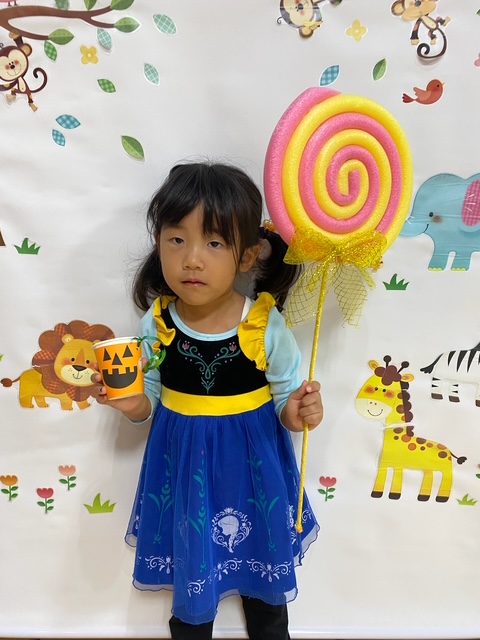 にこにこで「トリックオアトリート」と叫んで楽しんでいました。仮装もみんなそれぞれ選んで写真撮影もノリノリで楽しんでくれ良かったです😄